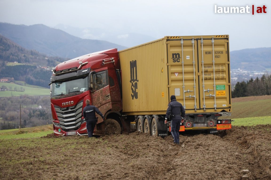 Kirchdorf an der Krems – Nesreća se dogodila u ulici Pyhrnpass Straße u blizini sela Strienzing u općini Wartberg an der Krems. Kamion je iz za sada nepoznatog uzroka izletio s ceste i uletio u susjednu njivu, gdje su se tegljač i poluprikolica zaglavili. Prema prvim pretpostavkama, nesreću je mogao izazvati interni hitni slučaj vozača kamiona.