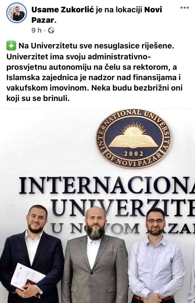 “Na Univerzitetu sve nesuglasice riješene. Univerzitet ima svoju administrativno-prosvjetnu autonomiju na čelu sa rektorom, a Islamska zajednica je nadzor nad finansijama i vakufskom imovinom. Neka budu bezbrižni oni koji su se brinuli.”