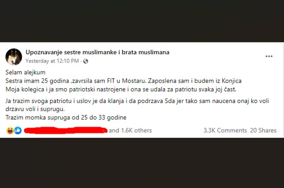 Na Facebook stranici “Upoznavanje sestre muslimanke i brata muslimana” objavljen ljubavni oglas koji je posao hit.