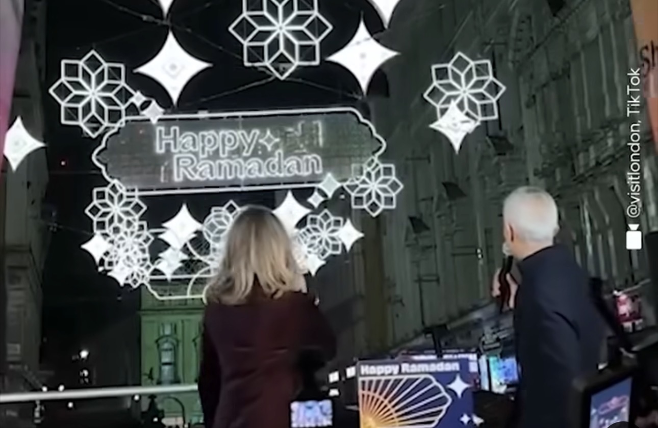 Londonski West End je ove sedmice zasjao u posebnom ruhu kada je gradonačelnik Sadiq Khan u petak navečer svečano upalio gradske svjetlosne dekoracije povodom ramazana, svetog mjeseca muslimana.