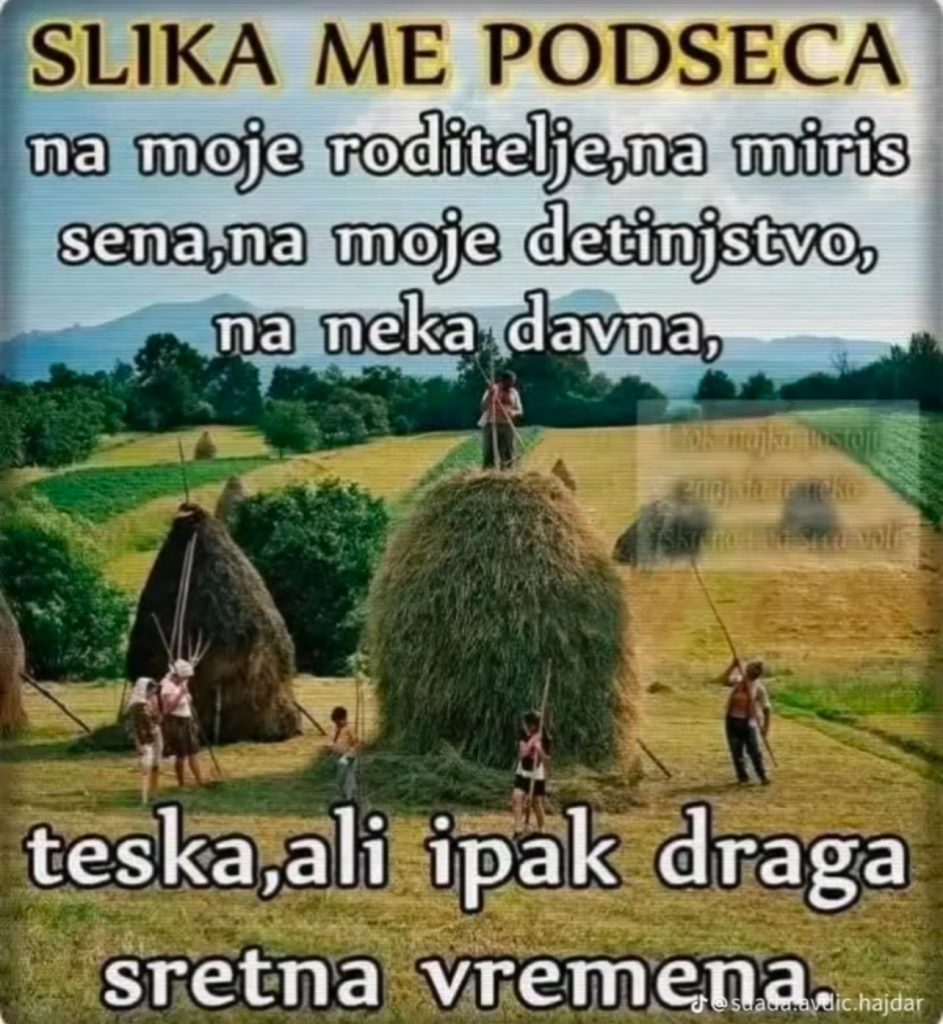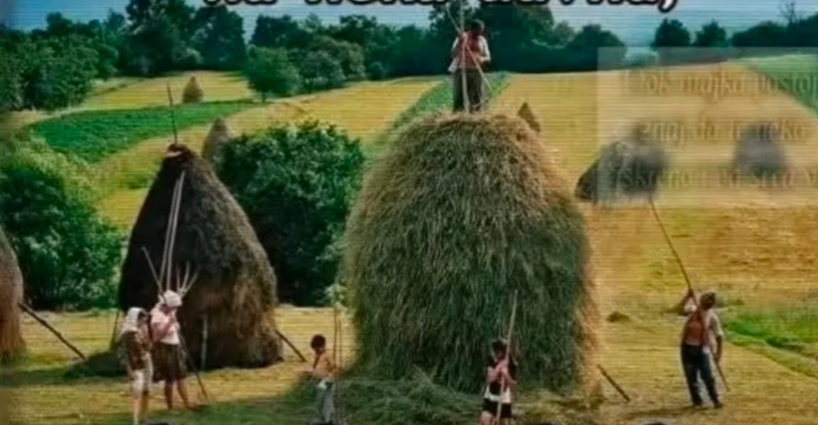 U poslednje vrijeme sve više je slika iz prošlosti koje svjedoče da je bilo teško ali srećno vrijeme. Vrijeme bez tehnike i mehanizacije, bez mobilni i svih stvari koje danas prave od djece robote. Evo jedne slike sa livade u sred ljeta: