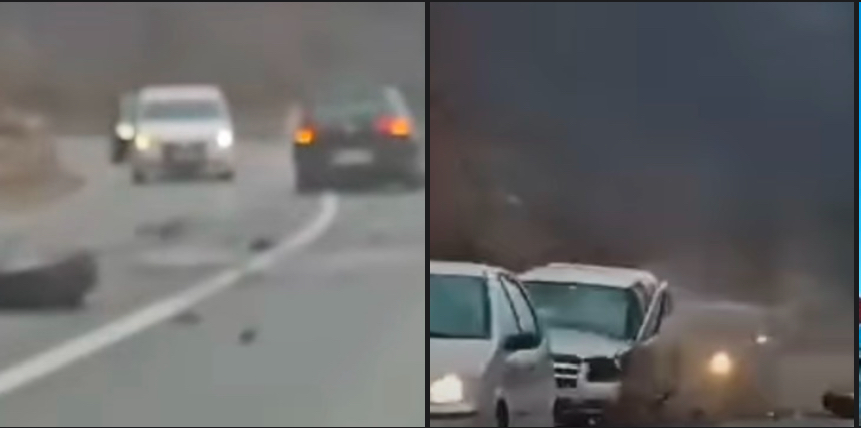 Kod Ovčar Banje dogodila se teška saobraćajna nesreća u kojoj je povrijeđeno više osoba, dok su vozila pretrpjela totalnu štetu. Nesreća, zabilježena kamerom drugog vozača, pokazuje trenutak kada Golf gubi kontrolu i izaziva lančani sudar.